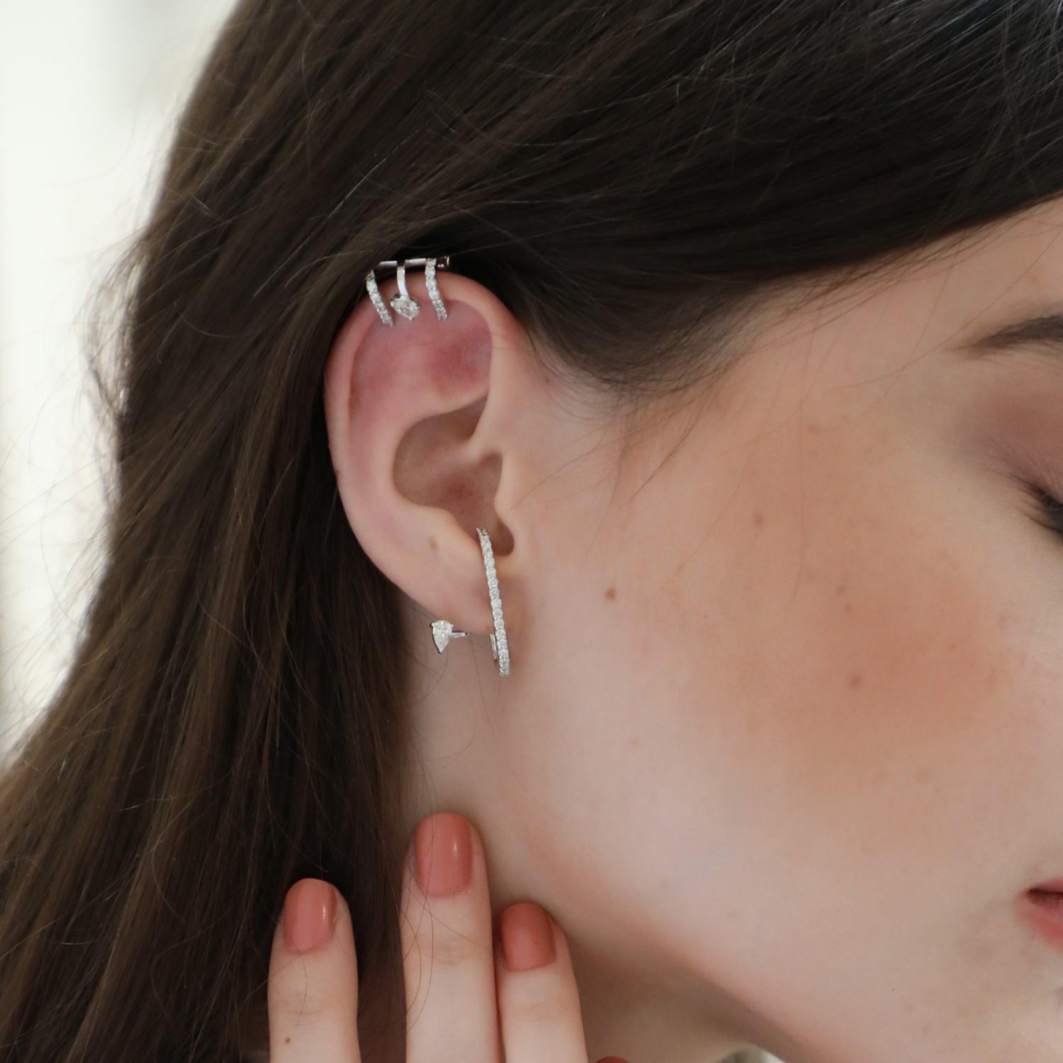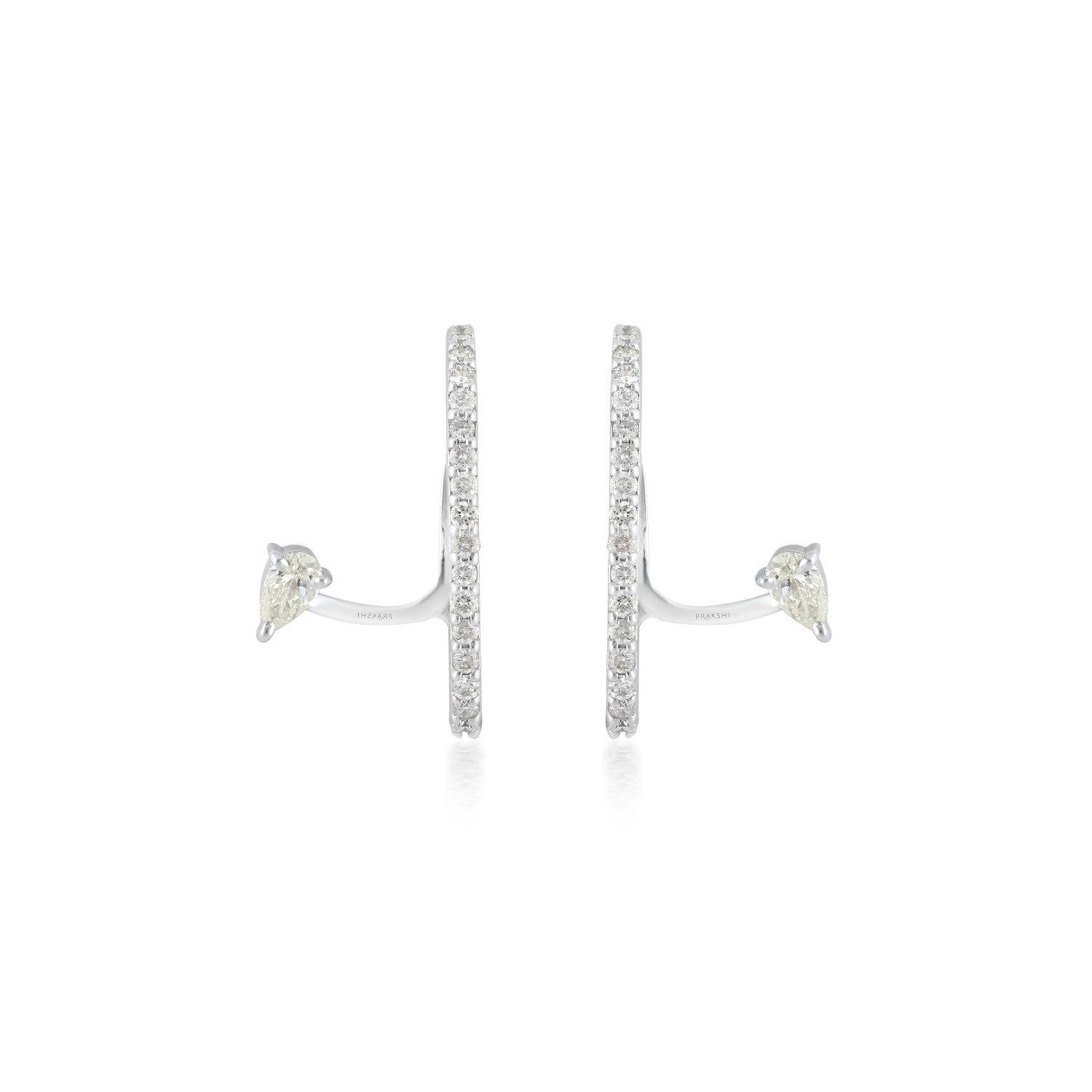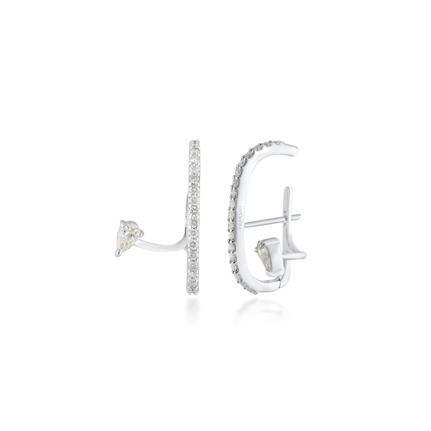 Sculpted in 18 karat white gold, the Rewind Pear & Round Ear Hugs pair luminous pear and round diamonds in a timeless embrace. Inspired by iconic monuments of the past, they echo stories of triumph and tragedy—where strength meets subtle beauty. Designed to sit close, these ear hugs capture history’s quiet power and reimagine it through refined, modern artistry.