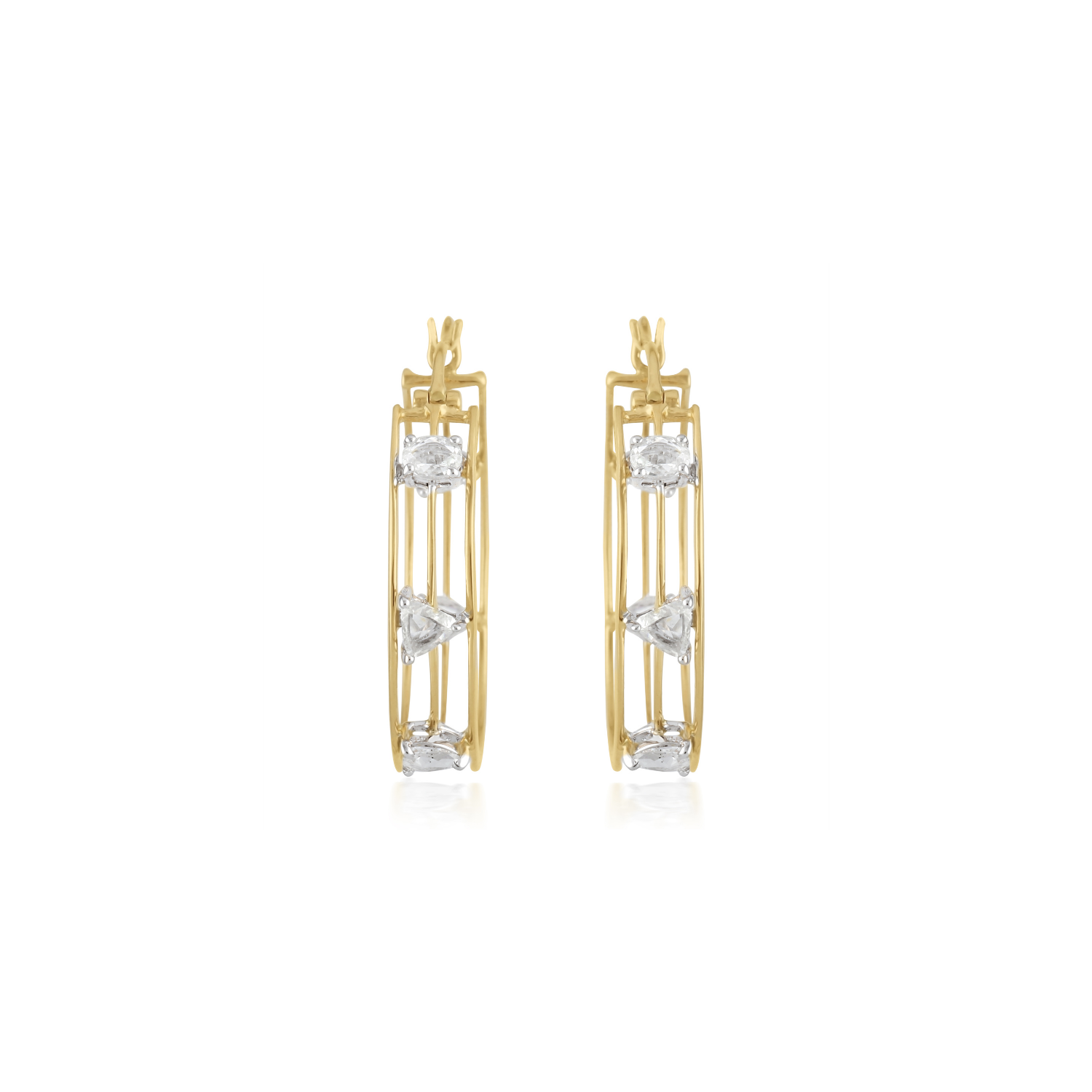 Escape Diamond Hoop Earrings in 18k gold feature pear-shaped diamonds set within a refined open-frame silhouette. Lightweight and fluid, they bring quiet movement and modern elegance—perfect for everyday wear and elevated moments.