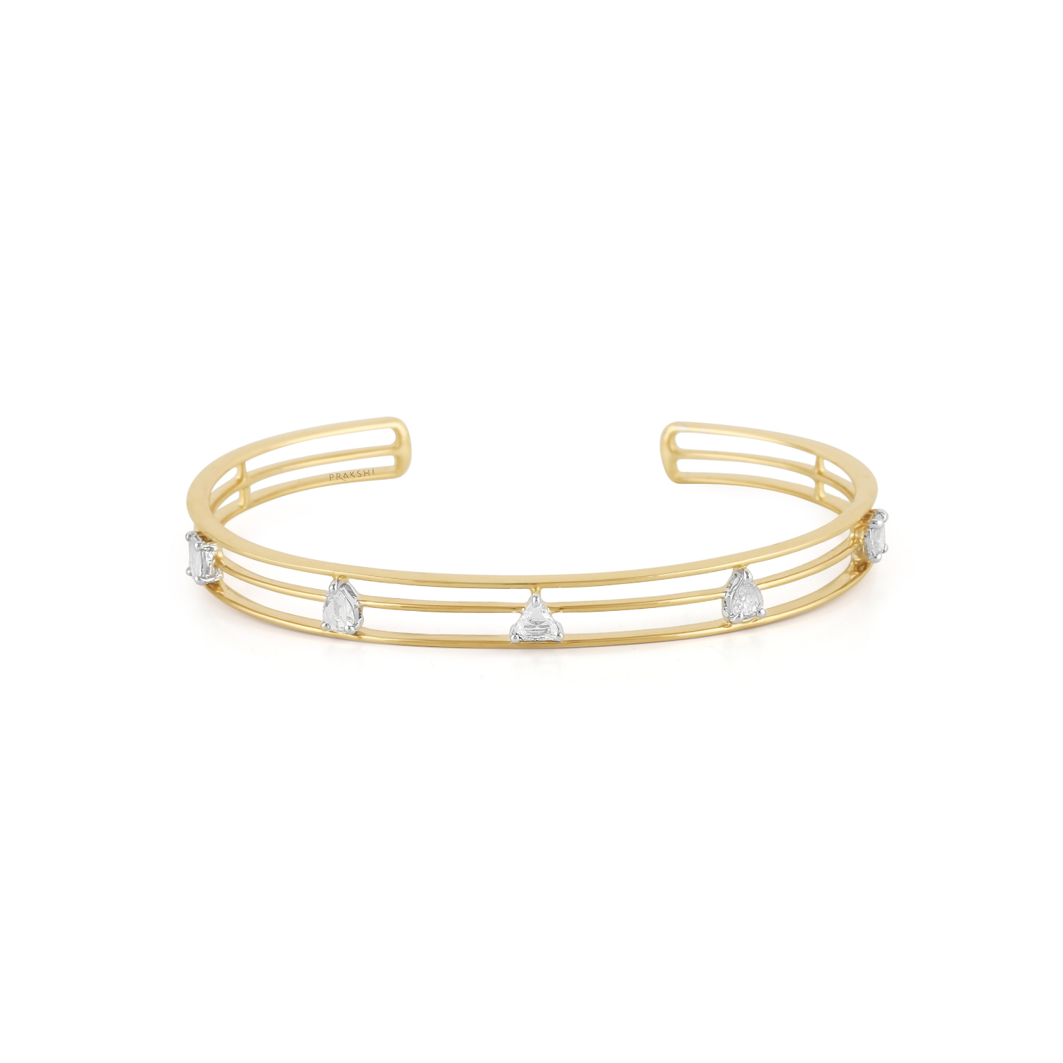Inspired by architectural frameworks shaped by time, this cuff bracelet from the Rewind Collection is crafted in 18K gold with a structured open design. Sculptural diamonds are placed along clean, linear bands, reflecting balance, transience, and the quiet beauty of imperfection. Elegant yet expressive, it’s a timeless piece meant to be worn effortlessly.