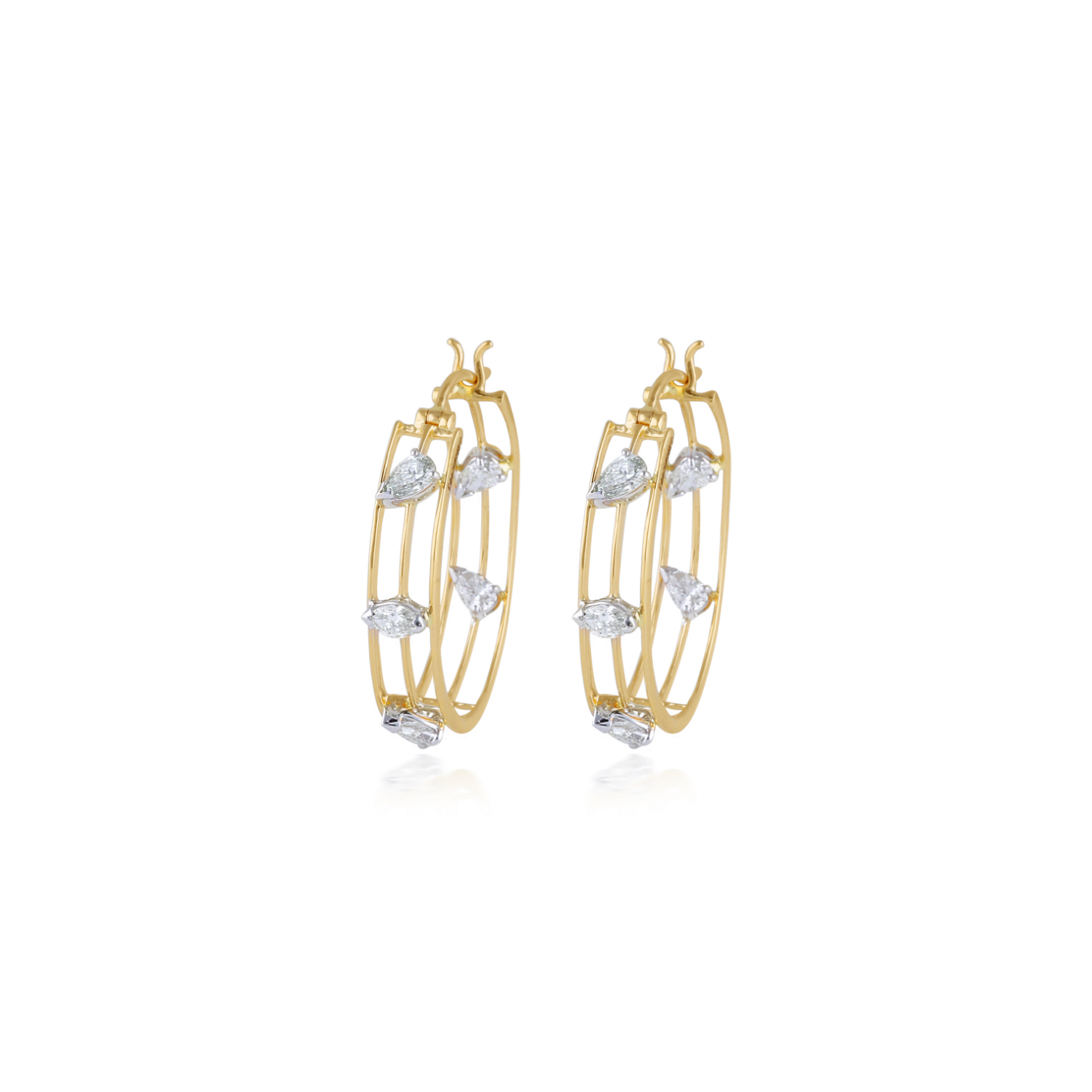 Inspired by architectural forms shaped by time, these small hoop earrings from the Rewind Collection are crafted in 18K gold with delicately placed sculptural diamonds. The layered structure reflects balance, movement, and the beauty of imperfection. Lightweight and refined, they are designed for effortless everyday elegance.