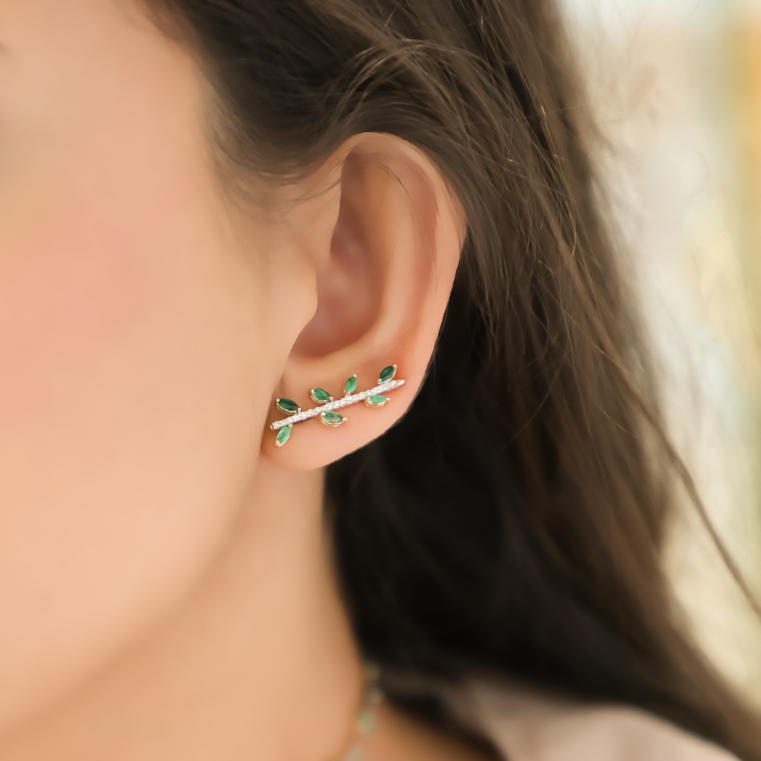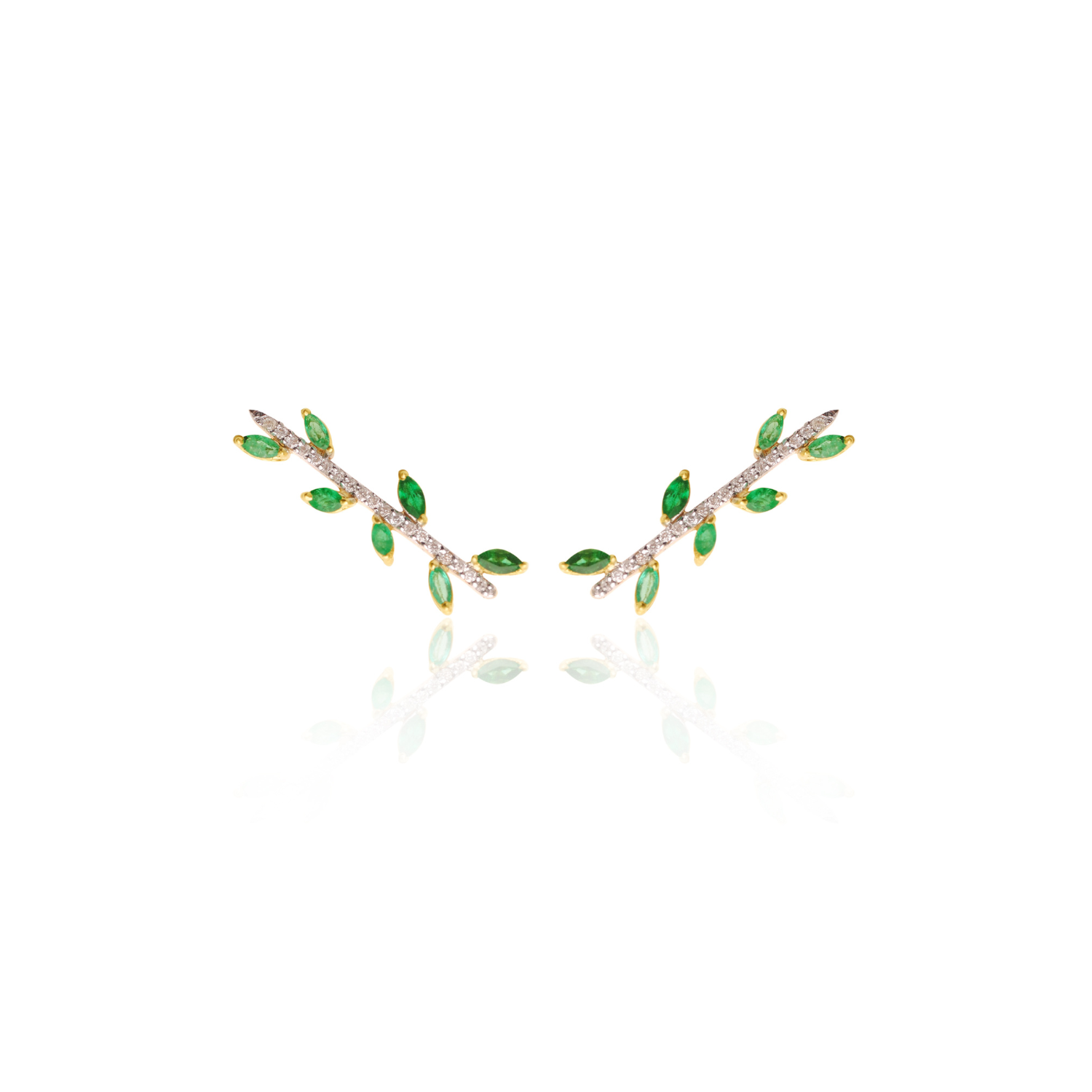 The Rise Climber Slider Earrings feature marquise-cut emeralds and diamonds arranged in a graceful ascent. Crafted in 18 karat gold, the climber silhouette traces the ear, symbolising growth, elevation, and quiet strength inspired by nature’s upward forms.